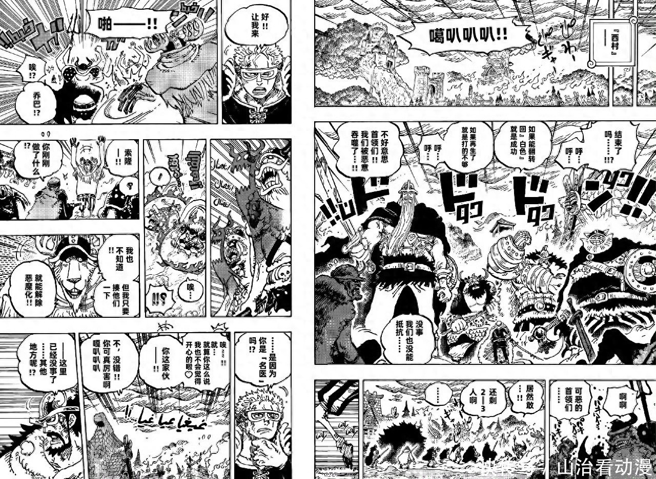 海贼王漫画剧情中,巨人族篇章越来越精彩了,草帽一伙和巨人族战士正在开宴会庆祝,他们不知道神之骑士团入侵巨人族。东利和布洛基等人还在开宴会,神之骑士团就开始绑架孩子了,这直接破坏了宴会,他们只能停止宴会,去营救孩子了。