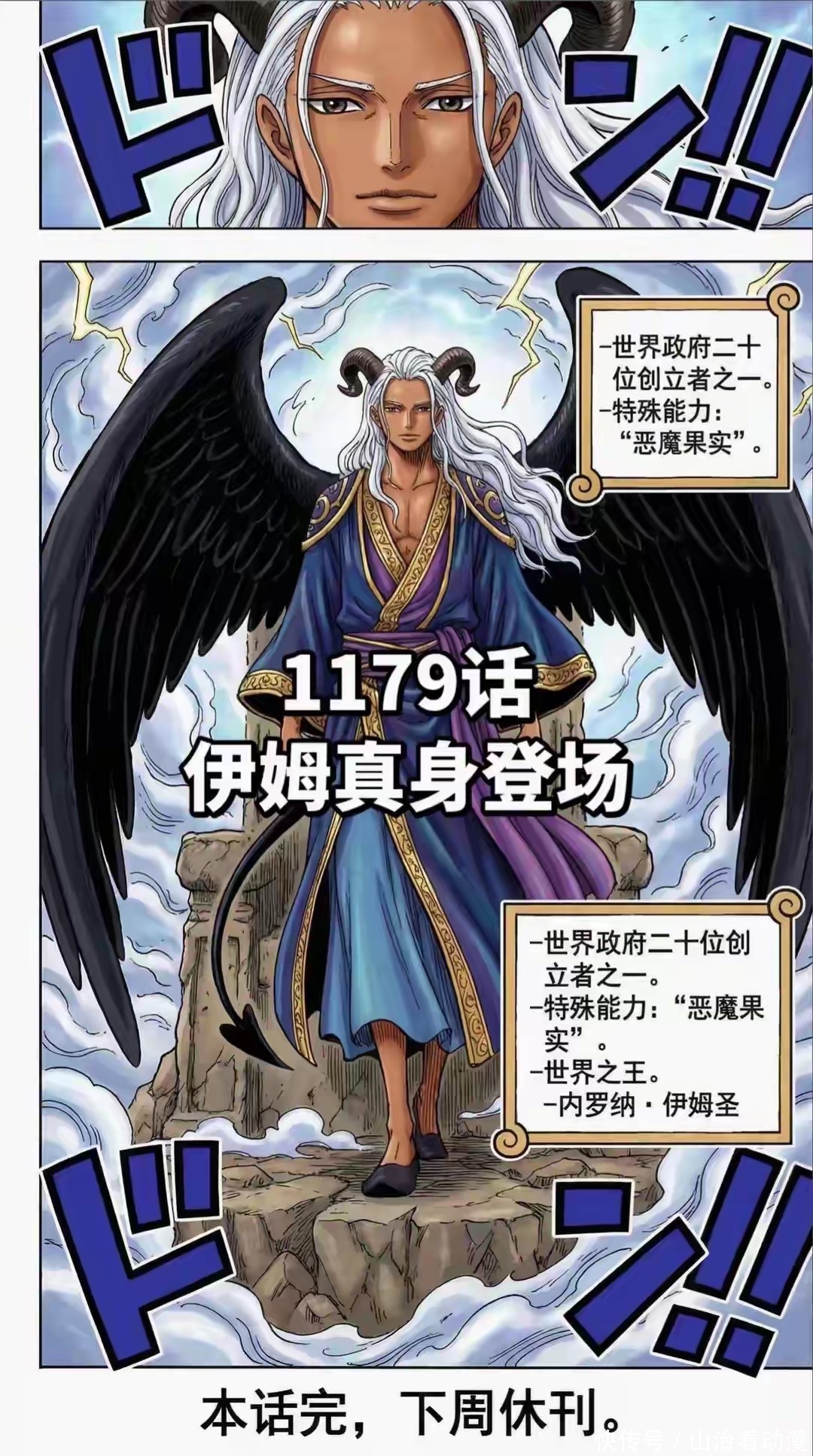 伊姆大人的本体在圣地玛丽乔亚,他已经知道了神之骑士团战败,于是想要亲自前往艾尔巴夫。五老星阻止伊姆大人,他们不希望伊姆大人出去冒险,于是给出了两个方案,第一个方案是派出一名海军大将前往巨人族。